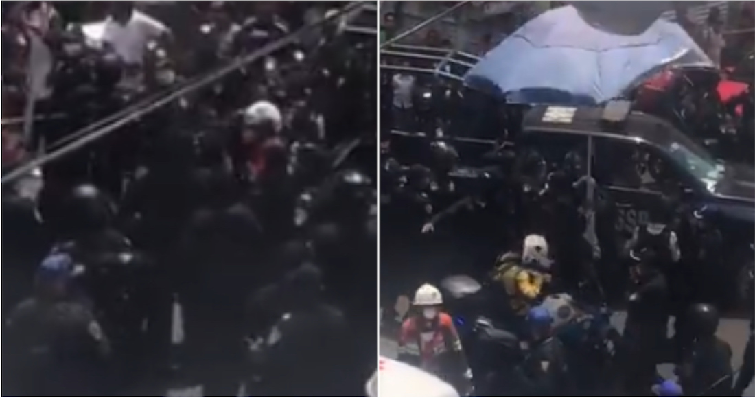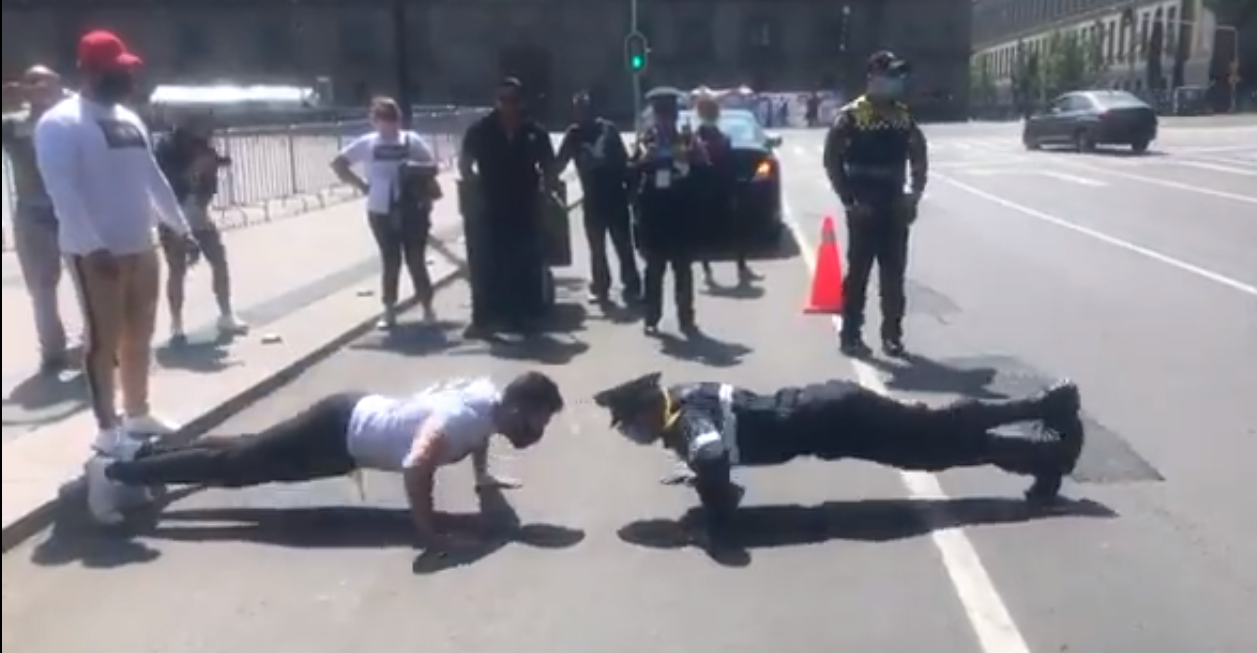 Policía derrota a manifestante en reto de lagartijas