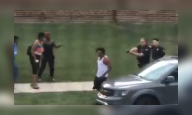 En un video de 13 segundos se observa al hombre de color mientras camina alrededor de una camioneta, y a un policía apuntándole por la espalda. De pronto el hombre se acomoda las bermudas y, en el momento en que entra a su camioneta, el uniformado lo jala de la camiseta y le dispara...