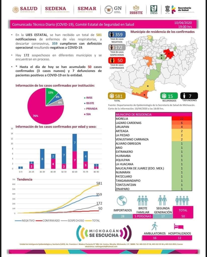 Morelia, Michoacán (MiMorelia.com).- Con una tasa de letalidad del 11 por ciento, Michoacán sigue entre las entidades que deberán permanecer en cuarentena debido a la cantidad de casos que actualmente va al alza, con 51 ...
