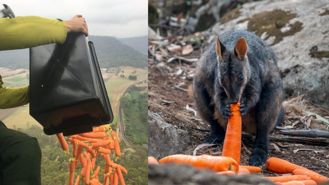 El gobierno de Nueva Gales del sur aprobó el lanzamiento de zanahorias y vegetales desde los helicópteros para ayudar a los animales.