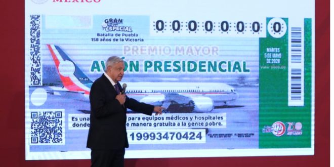 AMLO invita a comprar ´cachitos' de la rifa, subiéndose al avión presidencial