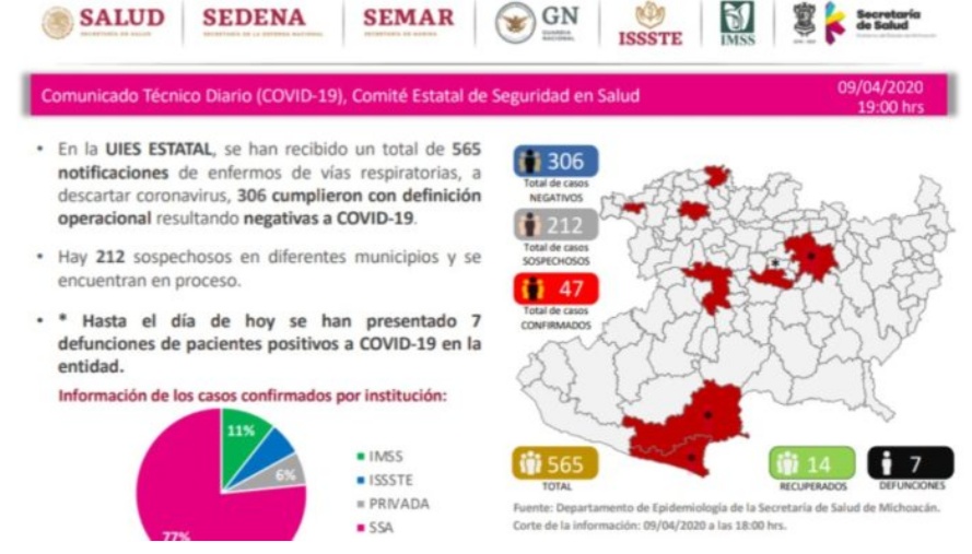 Confirman 76 nuevos casos y 113 muertes por Covid-19 en Michoacán