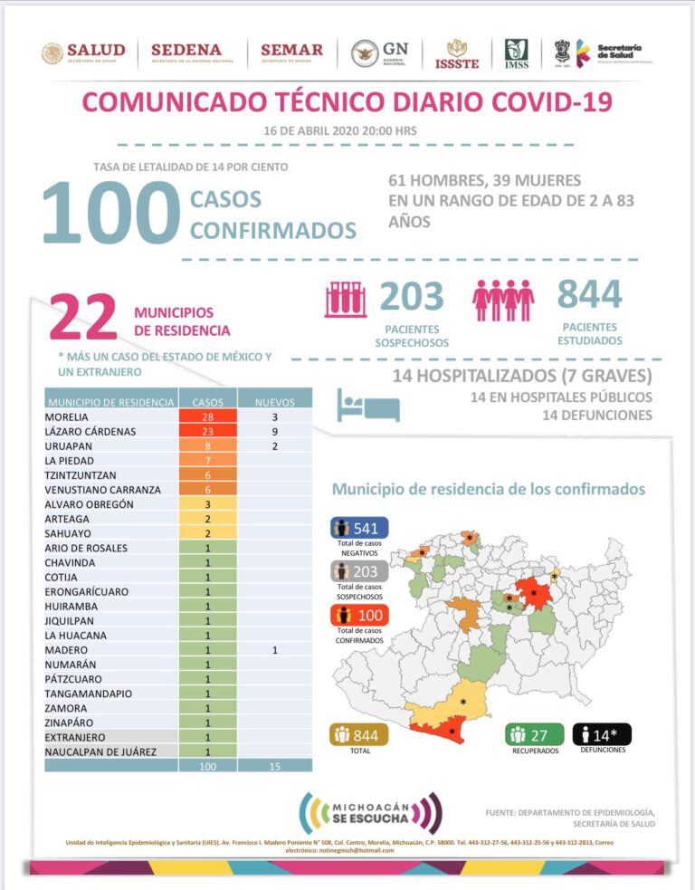 Morelia, Michoacán (MiMorelia.com).- Con una tasa de letalidad del 11 por ciento, Michoacán sigue entre las entidades que deberán permanecer en cuarentena debido a la cantidad de casos que actualmente va al alza, con 51 ...