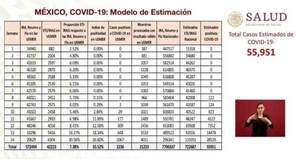 México registró 652,364 contagios confirmados acumulados en el país del nuevo coronavirus SARS-Cov-269, de los cuales se estima que 40,909 (6%)...