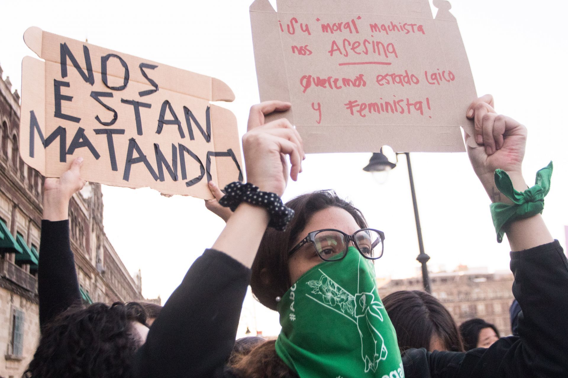 Feministas se manifiestan afuera de Palacio Nacional como respuesta a AMLO