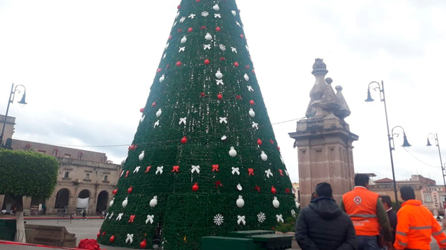 Retirarán árbol monumental navideño por fuerte viento, en Morelia