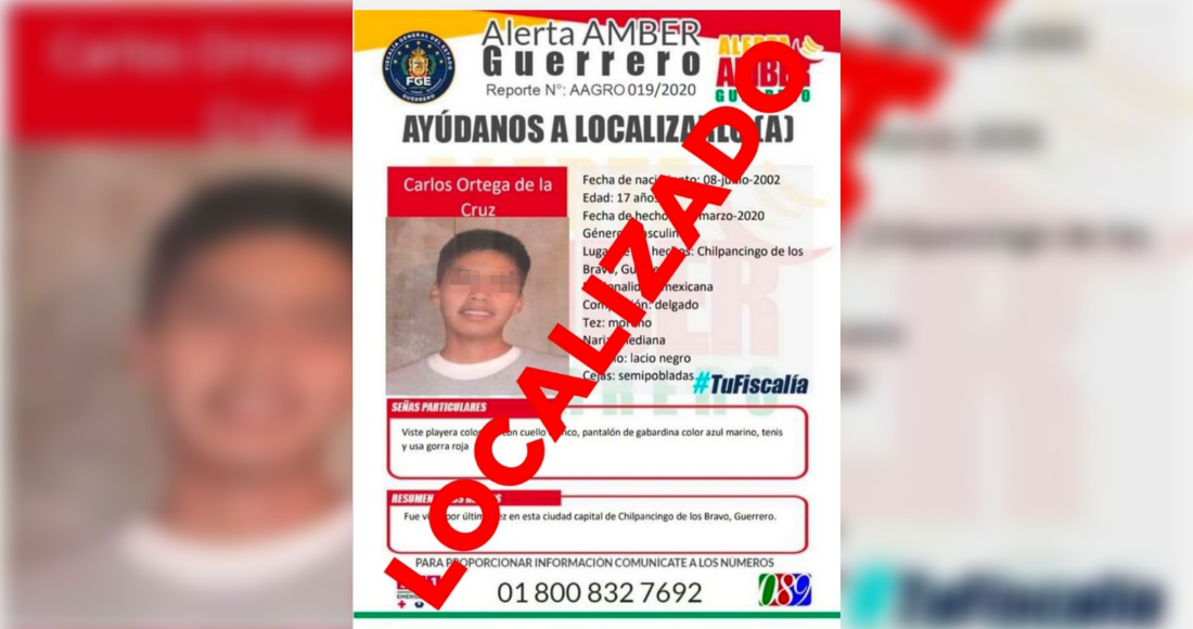 La Fiscalía General del Estado de Guerrero informó a través de sus redes sociales que el menor ya se encuentra con sus familiares en Chilpancingo, Guerrero, por lo que desactivó la Alerta Amber...